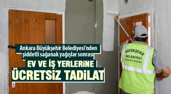 Ankara Büyükşehir Belediyesi, Başkent'te etkili olan şiddetli sağanak yağışlar sonrası evleri zarar gören vatandaşların yaralarını sarmaya devam ediyor. Vatandaşlardan gelen talepleri değerlendiren Kent Estetiği Daire Başkanlığı, iş yerleri ve konutlarda ücretsiz tadilat desteği sağlıyor.