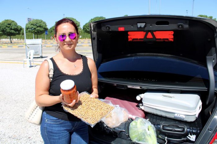 Memleketi Rize’de ailesiyle birlikte yaz tatilini tamamlayıp, Almanya’ya gitmek için Kapıkule Sınır Kapısı’na gelen Sibel Çelik, otomobil bagajını çaydan turşuya, yerel lezzetlerle doldurduğunu söyledi.