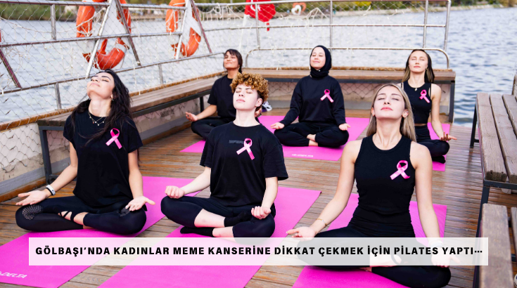Gölbaşı Belediyesi kurslarında görev yapan kadın antrenörler, meme kanserine dikkat çekmek için Atatürk Sahil Parkı ve teknede ‘Farkındayız, birlikteyiz, güçlüyüz’ sloganıyla pilates yaptı.