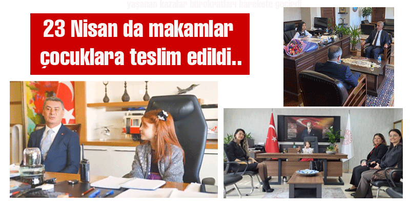 23 Nisan Ulusal Egemenlik ve Çocuk Bayramı nedeniyle makamlar çocuklara emanet edildi. Her yıl olduğu gibi gelenek bu yıl da gelenek bozulmadı. Makam ziyaretleri yapan çocuklar temsili olarak makamları temsil etti.