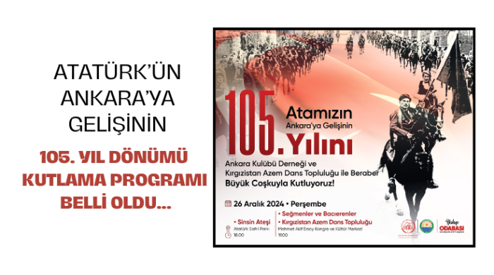 Gölbaşı Belediye Başkanı Yakup Odabaşı, Gazi Mustafa Kemal Atatürk’ün Ankara’ya gelişinin 105. yıl dönümünde ilçede düzenlenecek etkinliklere,“Bu tarihi günü unutmadığımızı ve unutturmayacağımızı göstermek için bir araya geleceğiz” ifadeleriyle tüm vatandaşları davet etti. Gölbaşı Belediyesi, Gazi Mustafa Kemal Atatürk’ün Ankara’ya gelişinin 105. yıl dönümünü büyük bir coşkuyla kutlayacak. Ankara Kulübü Derneği ve Kırgızistan Azem Dans Topluluğu iş birliğiyle düzenlenecek kutlama programı kapsamında, 26 Aralık Perşembe günü saat 18.00’de Atatürk Sahil Parkı’nda sinsin ateşi başında etkinlik düzenlenecek. Bu geleneksel ritüelin ardından, saat 19.00’da Mehmet Akif Ersoy Kongre ve Kültür Merkezi’nde Seğmenler, Bacıerenler ve Kırgızistan Azem Dans Topluluğu, kültürel bir gösteri sergileyecek.