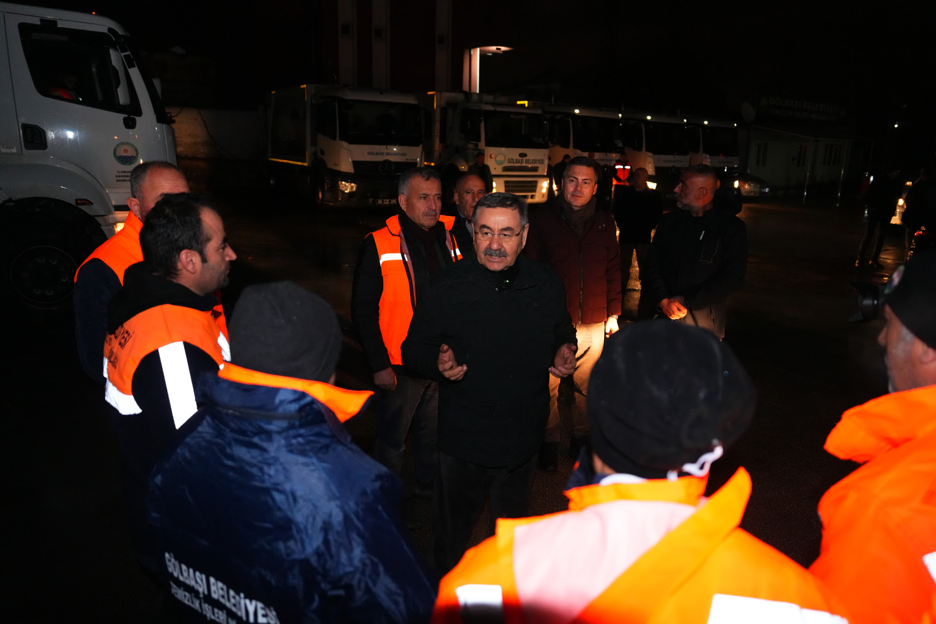 Gölbaşı Belediye Başkanı Yakup Odabaşı, kar yağışının ardından gece gündüz demeden kar küreme ve tuzlama çalışmalarını gerçekleştiren Temizlik İşleri Müdürlüğü ve Fen İşleri Müdürlüğü ekiplerini sabahın erken saatlerinde ziyaret etti.