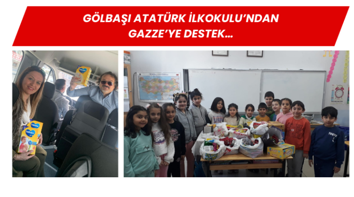 Gölbaşı Atatürk İlkokulu Okul Müdürlüğü koordinatörlüğünde, okul aile birliği başkanlığı nezdinde Gölbaşı Türk Kızılayı Şubesi ile “Gazzeli Kardeşlerimize Yardım Elini Uzatıyoruz” sloganıyla yardım kampanyası başlatıldı.