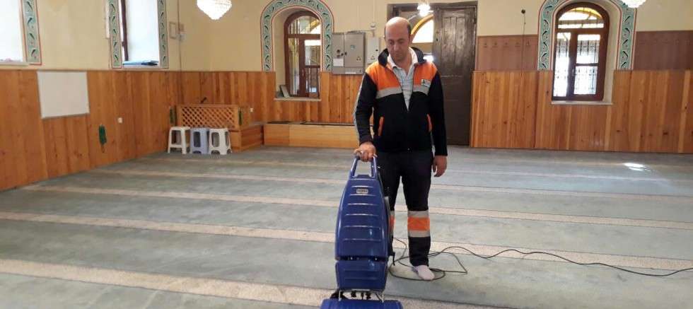 Yıl boyunca ilçedeki camileri temizleyerek vatandaşların kullanımına hazır hale getiren belediyenin Temizlik İşleri Müdürlüğü ekipleri, Ramazan ayı öncesinde çalışmalarını titizlikle sürdürüyor.