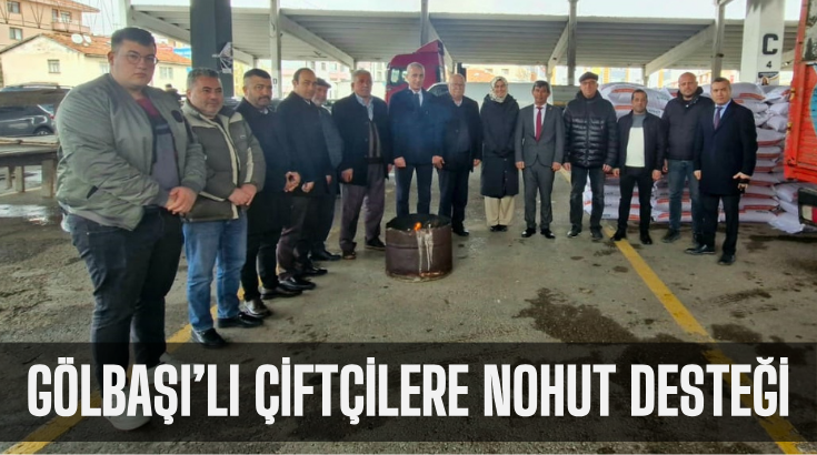 Gölbaşı'nda 207 çiftçiye % 50 hibeli 45 ton nohut dağıtımı yaptı. Nohut dağıtım törenine; Gölbaşı Kaymakamı Erol Rüstemoğlu, Gölbaşı Belediye Başkanı Ramazan Şimşek, İlçe Tarım ve Orman Müdürü Yavuz Ekici, Ziraat Odası Başkanı Sadullah Karaaslan, muhtarlar ve çiftçiler katıldı.