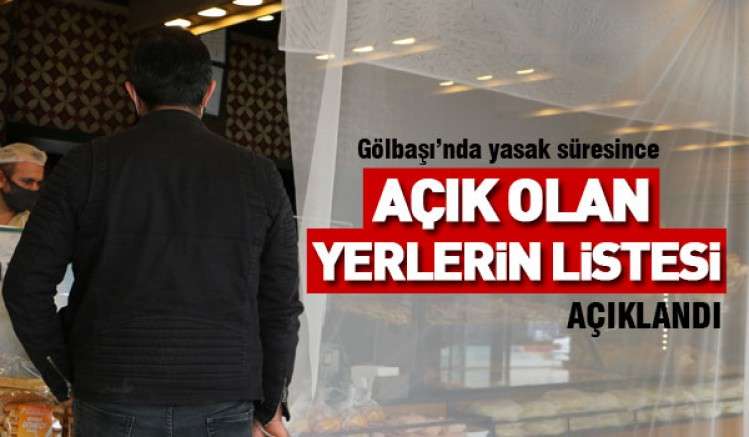İçişleri Bakanlığınca açıklanan 31 şehri kapsayan sokağa çıkma yasağı kapsamında Gölbaşı’nda 2 gün boyunca açık olacak yerlerin listesi belli oldu.