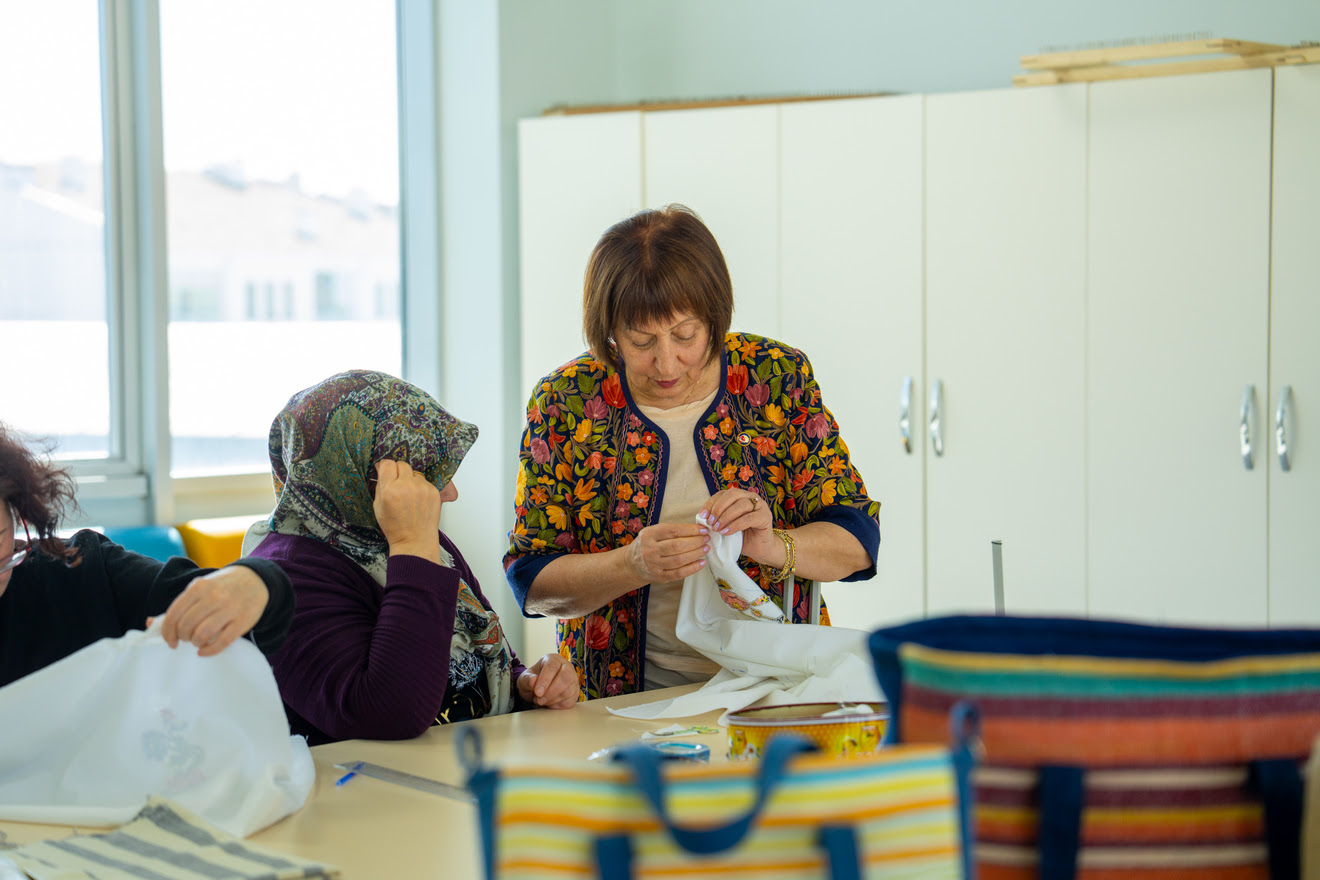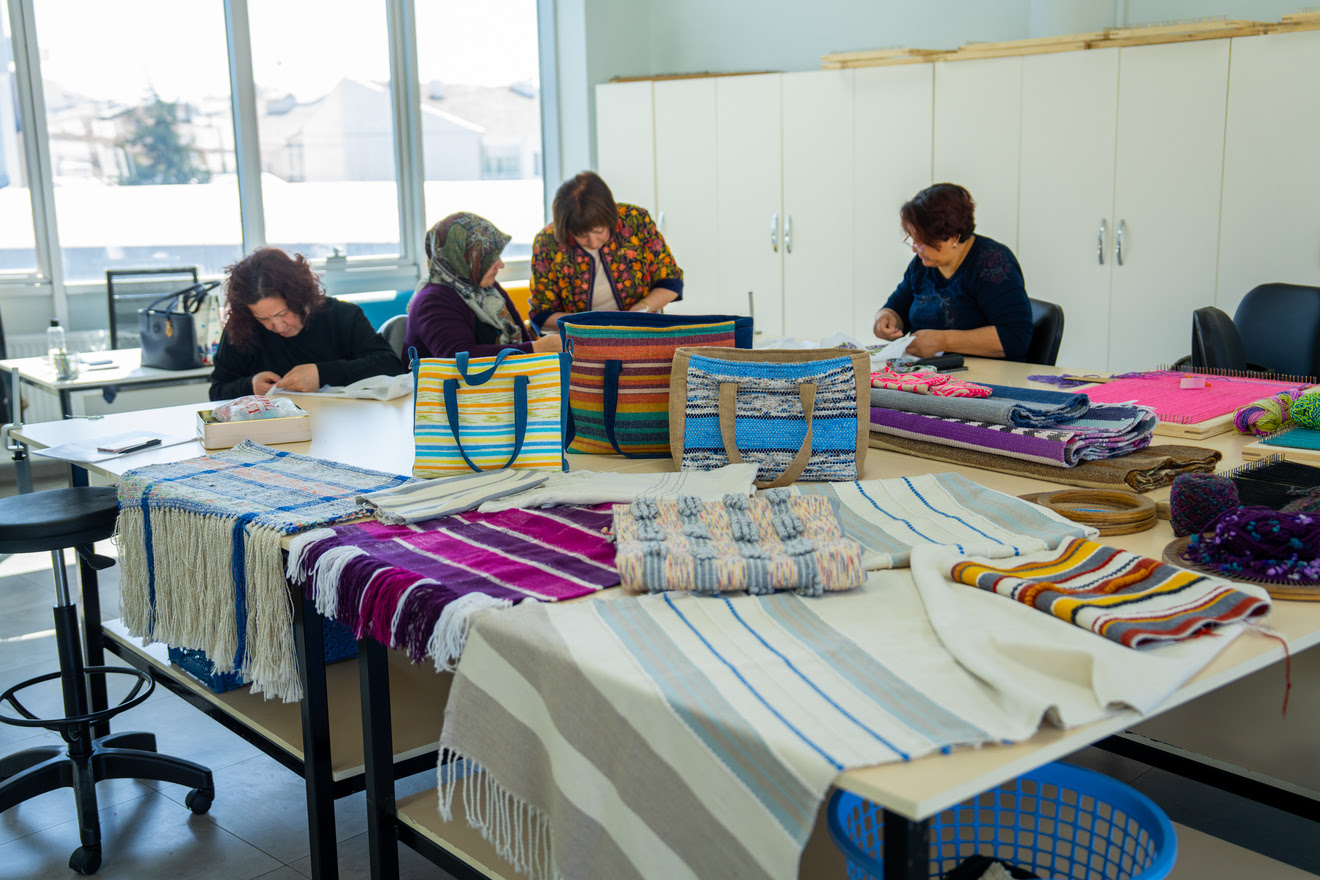 Elde edilen iplikler, Zübeyde Hanım Aile Yaşam Merkezi bünyesinde, uzman eğitmenler eşliğinde kursiyerlerin üretimine sunuluyor. Geleneksel dokuma teknikleriyle tezgâhlarda işlenen iplikler, kursiyerlerin emeğiyle ilmek ilmek yeniden şekilleniyor. Bu süreç sayesinde hem atıklar ekonomiye yeniden kazandırılıyor hem de estetik ve işlevsel ürünler ortaya çıkıyor.