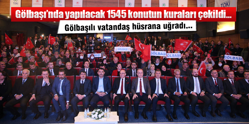 Toplu Konut İdaresi Başkanlığı'nca 250.000 sosyal konut projesi kapsamında Gölbaşı’nda yapılacak olan toplam 1545 adet konutun hak sahiplerini belirleme kurası, Gölbaşı Belediyesi Mehmet Akif Ersoy Kongre ve Kültür Merkezi’nde çekildi.