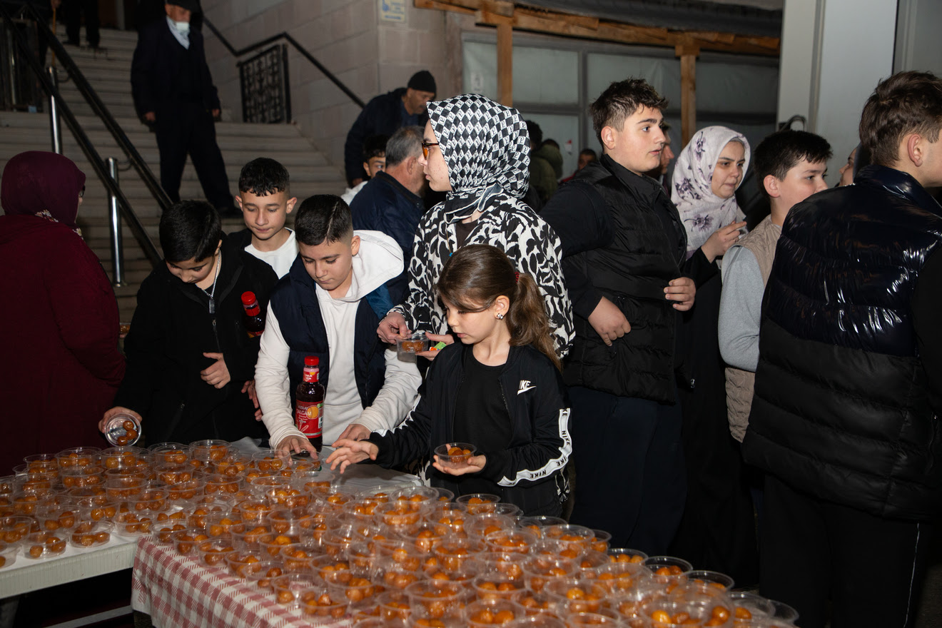 Okunan Kur’an-ı Kerim, ilahiler ve mevlid ile camiyi dolduran vatandaşlar duygu dolu anlar yaşadı. Ellerin semaya açıldığı gecede hocaların eşliğinde dualar edildi. Programın ardından vatandaşlara lokma ve şeker ikramında bulunuldu. Şafak Camii’nin yanı sıra ilçe genelindeki birçok camide de vatandaşlara lokma ve şeker dağıtımı yapıldı.