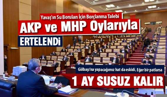 Ankara Büyükşehir Belediye Başkanı Mansur Yavaş'ın Tatlar Arıtma Tesisi ile 13 ilçedeki eskiyen su borularının yenilenmesi için kredi talebi AKP ve MHP oyları ile ertelendi.