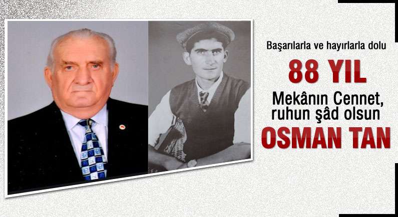 Çalışkanlığı, dur durak bilmez karakteri, samimiyeti, yardımseverliği ile gönüllerde taht kuran Osman Tan dualar eşlinde Karşıyaka Mahallesi mezarlığında toprağa verildi.
