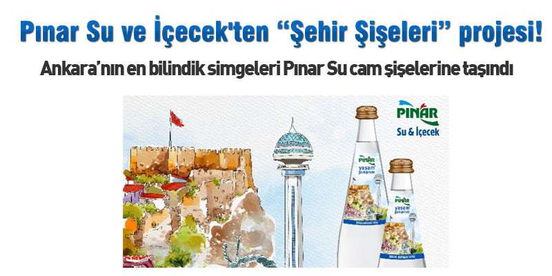 “Şehir Şişeleri” projesiyle tüketicilerini tarihi ve kültürel bir keşif yolculuğuna çıkaran Pınar Su ve İçecek, rotasını ülkemizin başkenti Ankara’ya çevirdi. Pınar Su şişelerinin üzerinde, Ankara denilince akla ilk gelen simgelerden;Kurtuluş Savaşı Müzesi(1. TBMM Binası), Atakule, Hitit Güneş Kursu Anıtı, Ankara Kalesi ve Beypazarı Evleri göze çarpıyor. Pınar Su ve İçecek, Şehir Şişeleri projesiyle Türkiye’nin tarihi ve doğal güzelliklerini ürün ambalajlarına taşımaya devam ediyor. Madran kaynağından çıkan yumuşak içimli ve zengin mineral değerlere sahip doğal kaynak suyunun olduğu cam şişelerin üzerinde ülkemizin farklı şehirleriyle bütünleşen simgeleri yer alıyor.Kültürel ve tarihi değerlerimizi barındıran tasarımların bulunduğu proje,tüketicilerine şehirlerimizin güzelliklerini ve tarihi yerlerini tanıtırken, ülkemizi keşfetmek için ilham kaynağı olarak turizme destek olmayı amaçlıyor. Başkent’in simgeleri Pınar Su şişelerinde