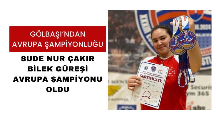 Gölbaşı Örencik Mahalle Muhtarı Lokman Çakır’ın kızı Sude Nur Çakır, Avrupa Bilek Güreşi Şampiyonası’nda sol kolda Avrupa Şampiyonu oldu.