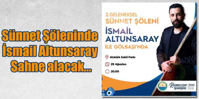 Sünnet olan çocuklar ile bir araya geldikten sonra akşam saatlerinde konser programlarının da başlayacağını belirten Ramazan Şimşek “Gölbaşımız çocuk sesleri ile yankılanacak. Gerçekleşecek olan ‘Sünnet Şölenimizde sünnet olan evlatlarımız ile bir araya gelerek onlara hediyelerini takdim edeceğiz. Saat 20.00’da değerli sanatçımız İsmail Altunsaray konser verecek. Tüm çocuklarımız ve halkımız davetlidir” dedi.