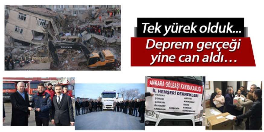 Ankara Gölbaşı İl Hemşehri Dernekleri Başkanları Ankara Kulüp Bşk. Uğur Okman, Ardahanlılar Der. Bşk Yücel Aktaş, Artvinliler Der. Bşk Bekir Demirci, Bayburtlular Der. Bşk Yüksel Kaymak, Çankırılılar Der. Bşk Mustafa Taş, Çorumlular Der. Bşk Osman Ulunç, Gümüşhaneliler Der. Bşk Gökhan Demir, Kırıkkaleliler Der. Bşk Behsat Aydemir, Kırşehirliler Der. Bşk Adem Aslan, Kars-Iğdır Der. Bşk Salih Kara, Samsunlular Der. Bşk İbrahim Kartal, Yozgatlılar Der. Bşk Murat Karakurt yardımları tıra kendi elleriyle yükledi. Yardımlar Elazığ ve Malatya’daki vatandaşlara gönderildi.