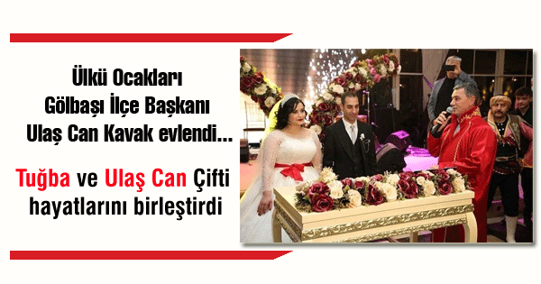 Ülkü Ocakları Gölbaşı İlçe Başkanı Ulaş Can Kavak, dünyaevine girdi. Ulaş Can Kavak hayatını Tuğba Acar ile birleştirdi.