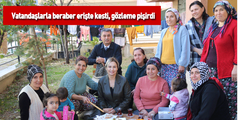 Vatandaşlarla beraber erişte kesti, gözleme pişirdi