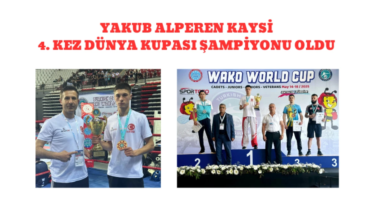 14-18 Mayıs 2025 tarihleri arasında Antalya’da düzenlenen “Wako Dünya Kupası’nda” milli sporcu Yakub Alperen Kaysi Büyük Erkekler 54 Kg Full Contact branşında tüm rakiplerini üstünlükle yenerek 2025 Dünya Kupası Şampiyonu oldu.