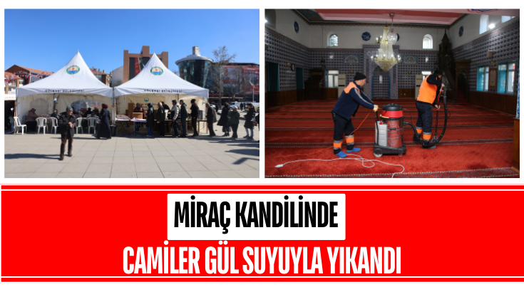 Belirli aralıklarla camilerin iç ve dış temizliğini yapan Gölbaşı Belediyesi Temizlik İşleri Müdürlüğü ekipleri, Miraç Kandili öncesi ilçedeki çok sayıda camide temizlik çalışması yaptı. Camilerin içi buharlı halı yıkama makinesiyle temizlenirken, dışarısı ise üfleme makinesi ve çalı süpürgeleriyle temizlendi. Ekipler camilerin içinin daha güzel kokması için makineyle gül suyu sıktı. Ekipler hem içerde, hem de avluda çalışma yaptı.