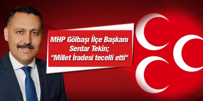Millet iradesinin doğru yönde tecelli ettiğini kaydeden Serdar Tekin; “Genel Başkanımız Sn.Dr.Devlet Bahçeli’nin de dediği gibi ‘28 Mayıs Cumhurbaşkanı Seçiminde küresel kuşatma yarılmış, Türkiye kutup yıldızını andıran aydınlığını korumuştur. Bundan sonra gelecek Türk asrıdır, geleceğin gücü Türkiye’dir. Türkiye Cumhuriyeti’nin 100’ncü yıldönümü taçlanmıştır.’ Millet iradesi tecelli etmiş, Cumhur ittifakı bu seçimlerden zaferle çıkmıştır. Gölbaşı’nda alınan sonuçlarda Cumhur ittifakı gücünü ortaya koyarken, kazanan hem Gölbaşımız hem de Türkiye'miz olmuştur. Sonuçların tüm ülkemize hayırlı olmasını diliyorum" dedi.