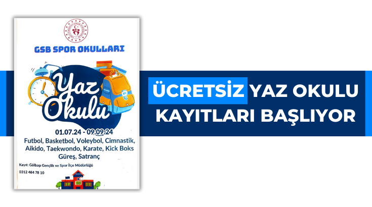 Gençlik ve Spor Bakanlığı spor okulları bünyesinde Gölbaşı’nda yaz okulu kurs kayıtları başlıyor.